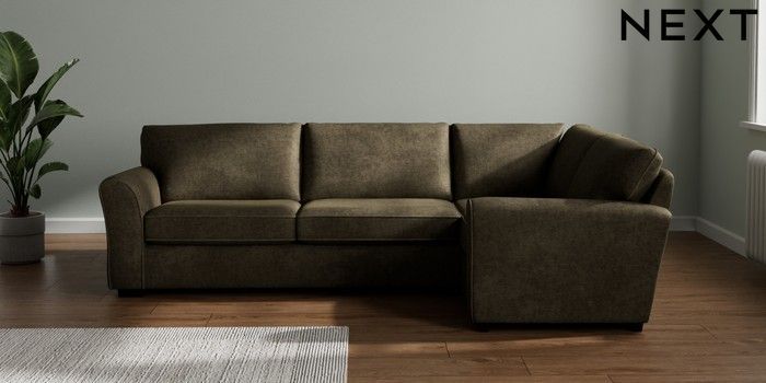 7.3.1 Buy Michigan II Large Corner Sofa - Right Hand Plush Chenille Moss Green Slim Block - Dark from the Seasons online shop Click here to use our website with more accessibility support, for example screen readers