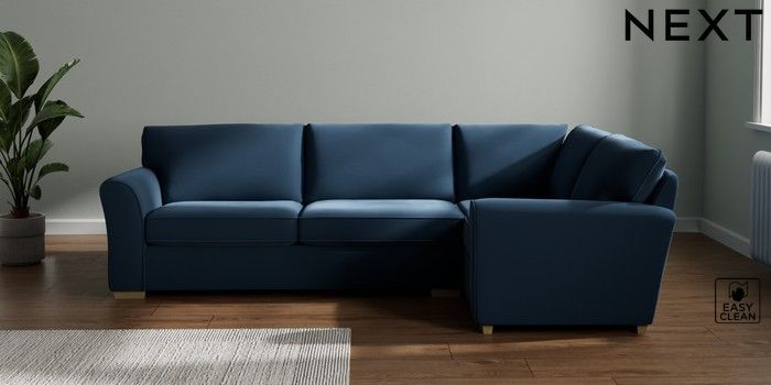 7.3.1 Buy Michigan II Large Corner Sofa - Right Hand Plush Velvet Easy Clean Airforce Blue Slim Block - Light from the Seasons online shop Click here to use our website with more accessibility support, for example screen readers
