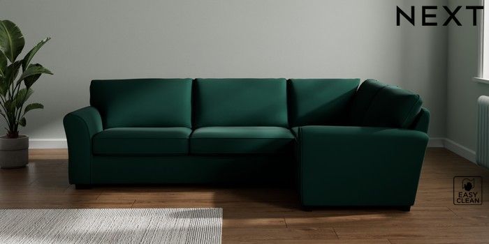 7.3.1 Buy Michigan II Large Corner Sofa - Right Hand Plush Velvet Easy Clean Bottle Green Slim Block - Dark from the Seasons online shop Click here to use our website with more accessibility support, for example screen readers