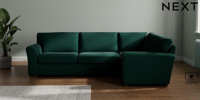 7.3.1 Buy Michigan II Large Corner Sofa - Right Hand Plush Velvet Easy Clean Bottle Green Slim Block - Mid from the Seasons online shop Click here to use our website with more accessibility support, for example screen readers