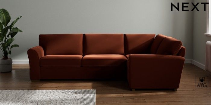 7.3.1 Buy Michigan II Large Corner Sofa - Right Hand Plush Velvet Easy Clean Ginger Orange Slim Block - Mid from the Seasons online shop Click here to use our website with more accessibility support, for example screen readers