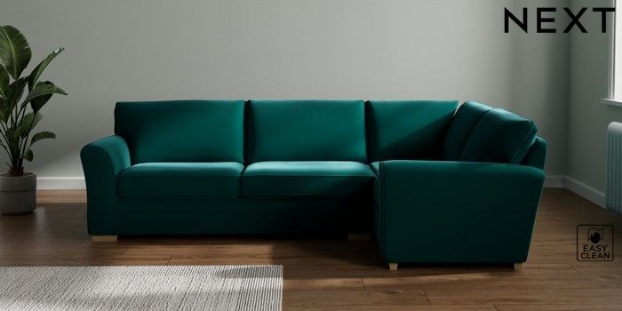 7.3.1 Buy Michigan II Large Corner Sofa - Right Hand Plush Velvet Easy Clean Juniper Green Slim Block - Light from the Seasons online shop Click here to use our website with more accessibility support, for example screen readers
