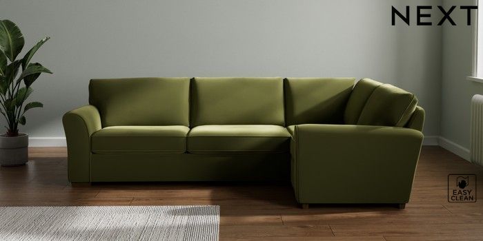 7.3.1 Buy Michigan II Large Corner Sofa - Right Hand Plush Velvet Easy Clean Mid Olive Green Slim Block - Mid from the Seasons online shop Click here to use our website with more accessibility support, for example screen readers