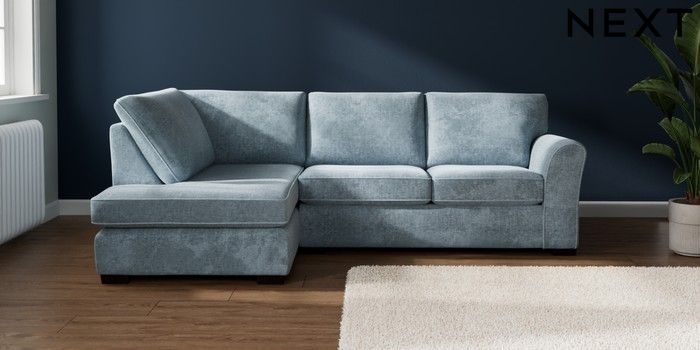 7.2.10 Buy Michigan II Medium Corner Chaise - Left Hand Plush Chenille Light Blue Slim Block - Dark from the Seasons online shop Click here to use our website with more accessibility support, for example screen readers