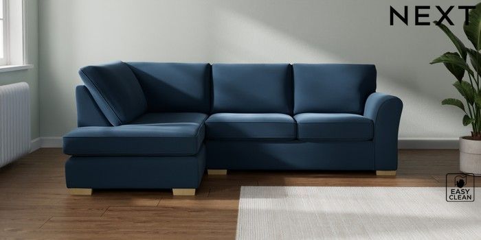 7.3.1 Buy Michigan II Medium Corner Chaise - Left Hand Plush Velvet Easy Clean Airforce Blue Slim Block - Light from the Seasons online shop Click here to use our website with more accessibility support, for example screen readers