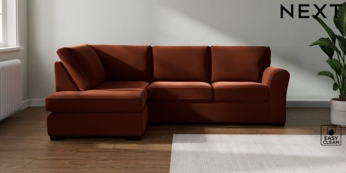 7.3.1 Buy Michigan II Medium Corner Chaise - Left Hand Plush Velvet Easy Clean Ginger Orange Slim Block - Dark from the Seasons online shop Click here to use our website with more accessibility support, for example screen readers