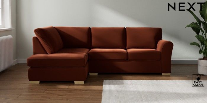 7.3.1 Buy Michigan II Medium Corner Chaise - Left Hand Plush Velvet Easy Clean Ginger Orange Slim Block - Light from the Seasons online shop Click here to use our website with more accessibility support, for example screen readers
