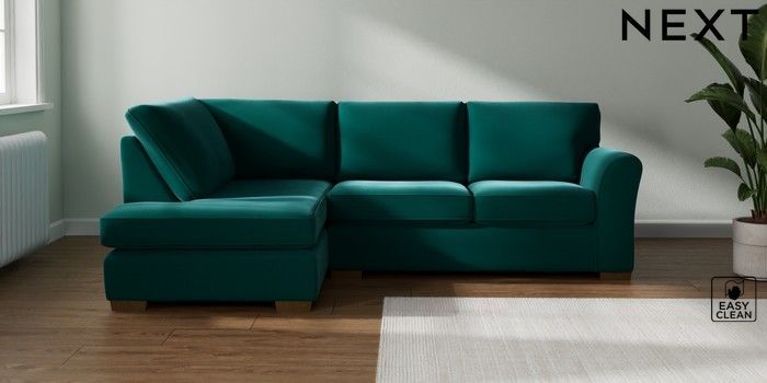 7.3.1 Buy Michigan II Medium Corner Chaise - Left Hand Plush Velvet Easy Clean Juniper Green Slim Block - Mid from the Seasons online shop Click here to use our website with more accessibility support, for example screen readers