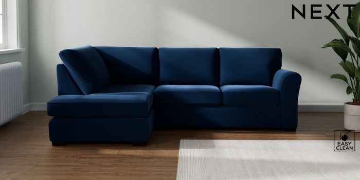 7.3.1 Buy Michigan II Medium Corner Chaise - Left Hand Plush Velvet Easy Clean Navy Blue Slim Block - Dark from the Seasons online shop Click here to use our website with more accessibility support, for example screen readers