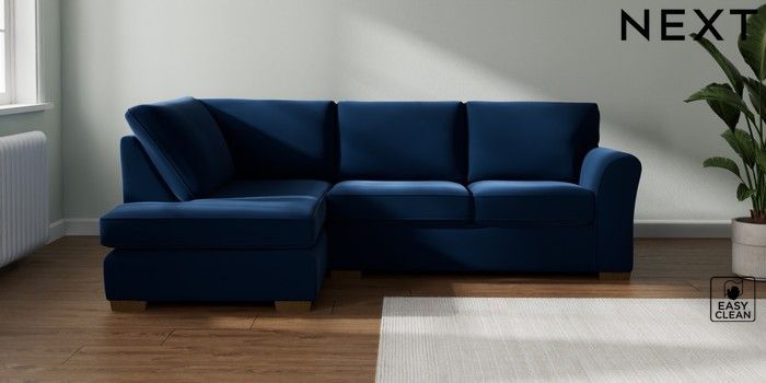 7.3.1 Buy Michigan II Medium Corner Chaise - Left Hand Plush Velvet Easy Clean Navy Blue Slim Block - Mid from the Seasons online shop Click here to use our website with more accessibility support, for example screen readers