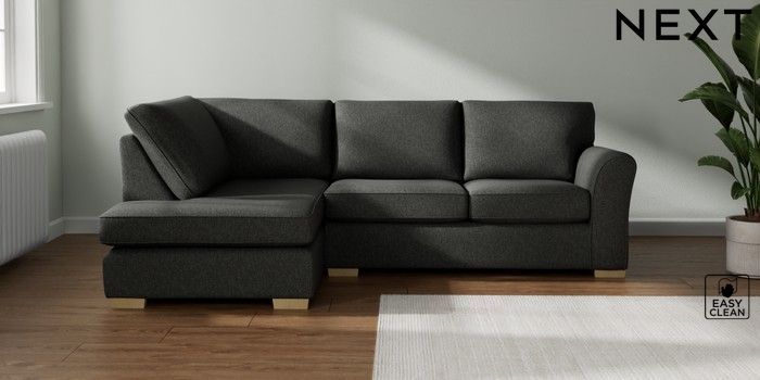 7.3.1 Buy Michigan II Medium Corner Chaise - Left Hand Tweedy Blend Easy Clean Charcoal Grey Slim Block - Light from the Seasons online shop Click here to use our website with more accessibility support, for example screen readers