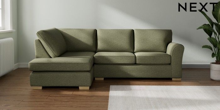 7.3.1 Buy Michigan II Medium Corner Chaise - Left Hand Tweedy Chenille Mid Moss Green Slim Block - Light from the Seasons online shop Click here to use our website with more accessibility support, for example screen readers