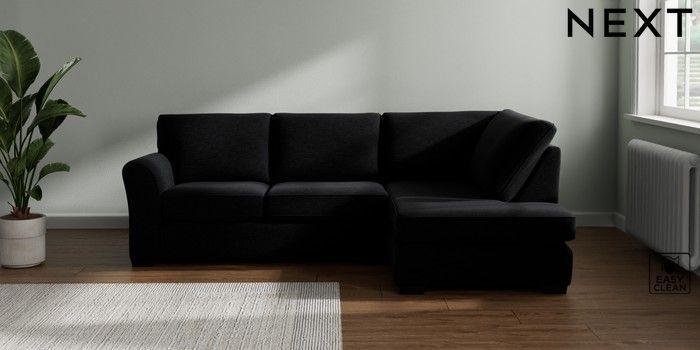 7.3.1 Buy Michigan II Medium Corner Chaise - Right Hand Fine Chenille Easy Clean Black Slim Block - Dark from the Seasons online shop Click here to use our website with more accessibility support, for example screen readers