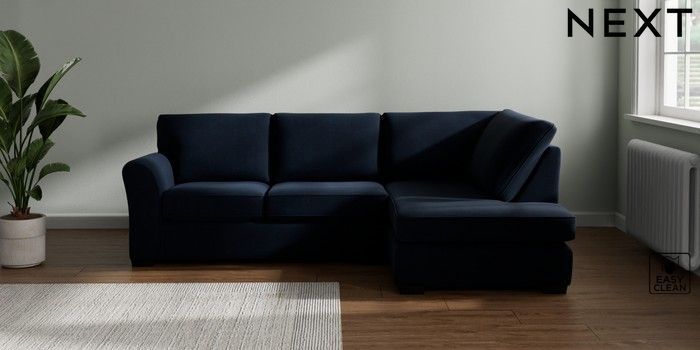 7.3.1 Buy Michigan II Medium Corner Chaise - Right Hand Fine Chenille Easy Clean Dark Navy Blue Slim Block - Dark from the Seasons online shop Click here to use our website with more accessibility support, for example screen readers