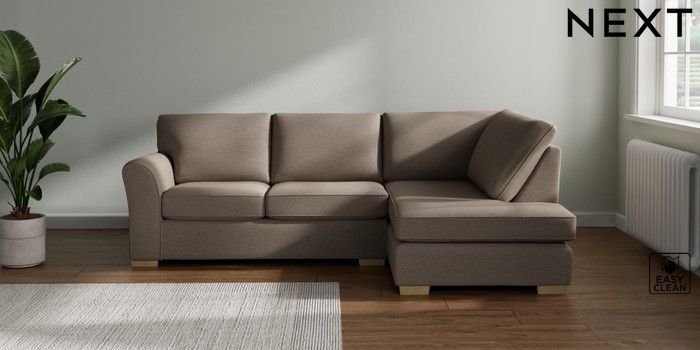 7.3.1 Buy Michigan II Medium Corner Chaise - Right Hand Fine Chenille Easy Clean Mid Taupe Brown Slim Block - Light from the Seasons online shop Click here to use our website with more accessibility support, for example screen readers
