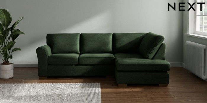 7.3.1 Buy Michigan II Medium Corner Chaise - Right Hand Luxe Chenille Dark Green Slim Block - Mid from the Seasons online shop Click here to use our website with more accessibility support, for example screen readers