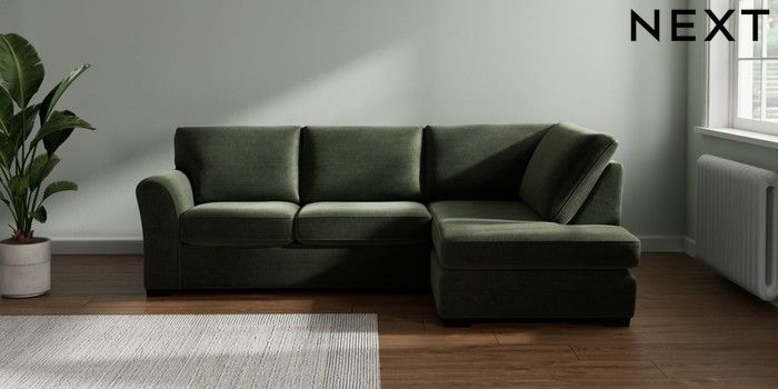 7.3.1 Buy Michigan II Medium Corner Chaise - Right Hand Luxe Chenille Mid Green Slim Block - Dark from the Seasons online shop Click here to use our website with more accessibility support, for example screen readers
