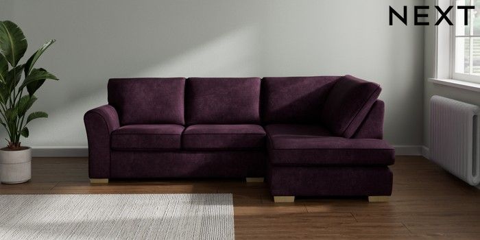 7.3.1 Buy Michigan II Medium Corner Chaise - Right Hand Plush Chenille Dark Plum Purple Slim Block - Light from the Seasons online shop Click here to use our website with more accessibility support, for example screen readers