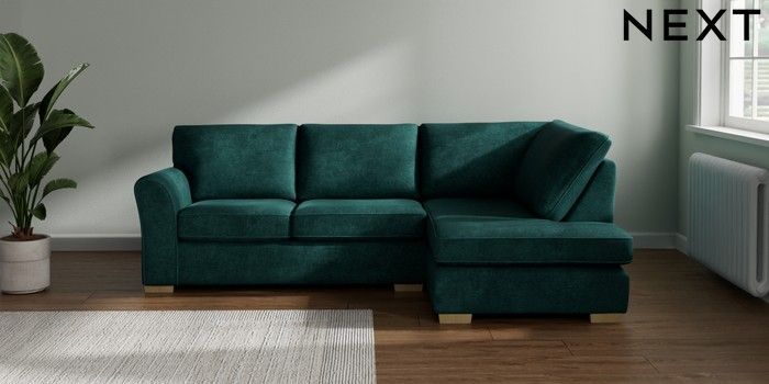 7.3.1 Buy Michigan II Medium Corner Chaise - Right Hand Plush Chenille Dark Teal Green Slim Block - Light from the Seasons online shop Click here to use our website with more accessibility support, for example screen readers