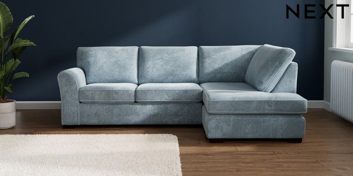 7.2.10 Buy Michigan II Medium Corner Chaise - Right Hand Plush Chenille Light Blue Slim Block - Dark from the Seasons online shop Click here to use our website with more accessibility support, for example screen readers