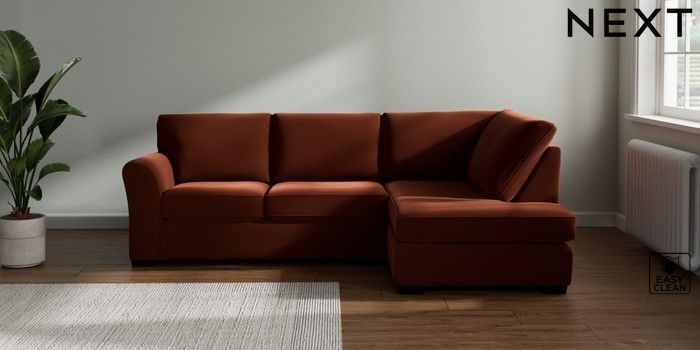 7.3.1 Buy Michigan II Medium Corner Chaise - Right Hand Plush Velvet Easy Clean Ginger Orange Slim Block - Dark from the Seasons online shop Click here to use our website with more accessibility support, for example screen readers