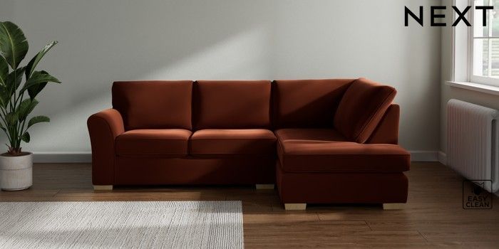 7.3.1 Buy Michigan II Medium Corner Chaise - Right Hand Plush Velvet Easy Clean Ginger Orange Slim Block - Light from the Seasons online shop Click here to use our website with more accessibility support, for example screen readers