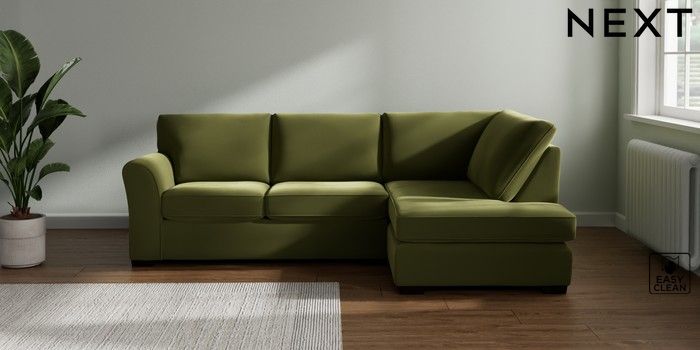 7.3.1 Buy Michigan II Medium Corner Chaise - Right Hand Plush Velvet Easy Clean Mid Olive Green Slim Block - Dark from the Seasons online shop Click here to use our website with more accessibility support, for example screen readers