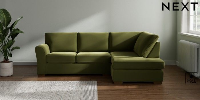 7.3.1 Buy Michigan II Medium Corner Chaise - Right Hand Plush Velvet Easy Clean Mid Olive Green Slim Block - Mid from the Seasons online shop Click here to use our website with more accessibility support, for example screen readers