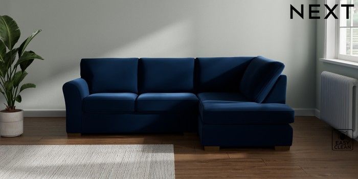 7.3.1 Buy Michigan II Medium Corner Chaise - Right Hand Plush Velvet Easy Clean Navy Blue Slim Block - Mid from the Seasons online shop Click here to use our website with more accessibility support, for example screen readers