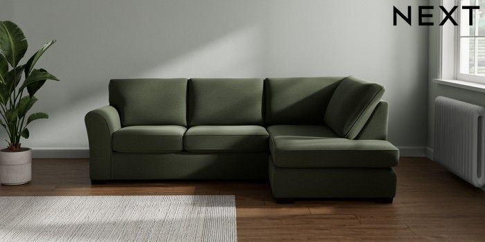 7.3.1 Buy Michigan II Medium Corner Chaise - Right Hand Relaxed Linen Look Dark Green Slim Block - Dark from the Seasons online shop Click here to use our website with more accessibility support, for example screen readers