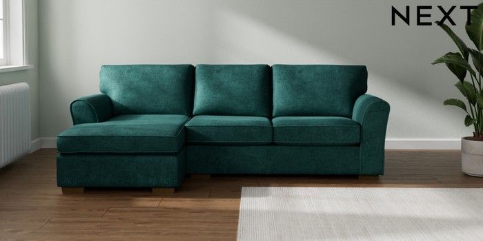 7.3.1 Buy Michigan II Medium Sofa Chaise - Left Hand Plush Chenille Dark Teal Green Slim Block - Mid from the Seasons online shop Click here to use our website with more accessibility support, for example screen readers