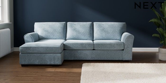 7.2.10 Buy Michigan II Medium Sofa Chaise - Left Hand Plush Chenille Light Blue Slim Block - Dark from the Seasons online shop Click here to use our website with more accessibility support, for example screen readers