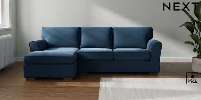 7.3.1 Buy Michigan II Medium Sofa Chaise - Left Hand Plush Velvet Easy Clean Airforce Blue Slim Block - Mid from the Seasons online shop Click here to use our website with more accessibility support, for example screen readers