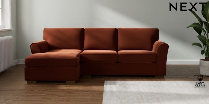 7.3.1 Buy Michigan II Medium Sofa Chaise - Left Hand Plush Velvet Easy Clean Ginger Orange Slim Block - Mid from the Seasons online shop Click here to use our website with more accessibility support, for example screen readers