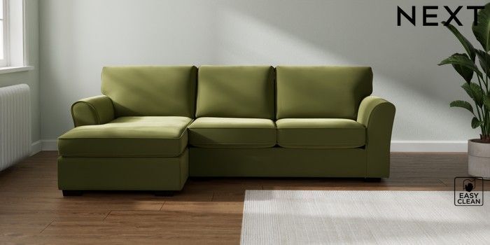 7.3.1 Buy Michigan II Medium Sofa Chaise - Left Hand Plush Velvet Easy Clean Mid Olive Green Slim Block - Dark from the Seasons online shop Click here to use our website with more accessibility support, for example screen readers