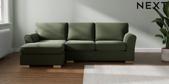 7.3.1 Buy Michigan II Medium Sofa Chaise - Left Hand Relaxed Linen Look Dark Green Slim Block - Light from the Seasons online shop Click here to use our website with more accessibility support, for example screen readers