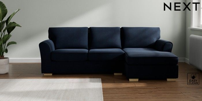 7.3.1 Buy Michigan II Medium Sofa Chaise - Right Hand Fine Chenille Easy Clean Dark Navy Blue Slim Block - Light from the Seasons online shop Click here to use our website with more accessibility support, for example screen readers