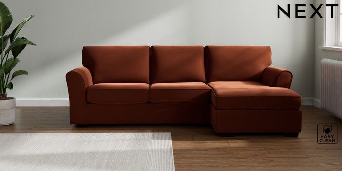 7.3.1 Buy Michigan II Medium Sofa Chaise - Right Hand Plush Velvet Easy Clean Ginger Orange Slim Block - Dark from the Seasons online shop Click here to use our website with more accessibility support, for example screen readers