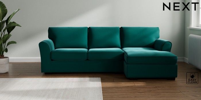 7.3.1 Buy Michigan II Medium Sofa Chaise - Right Hand Plush Velvet Easy Clean Juniper Green Slim Block - Dark from the Seasons online shop Click here to use our website with more accessibility support, for example screen readers