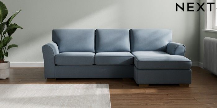 7.3.1 Buy Michigan II Medium Sofa Chaise - Right Hand Relaxed Linen Look Mid Blue Slim Block - Mid from the Seasons online shop Click here to use our website with more accessibility support, for example screen readers