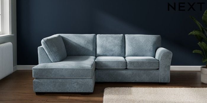7.3.1 Buy Michigan II Small Corner Chaise - Left Hand Plush Chenille Light Blue Slim Block - Dark from the Seasons online shop Click here to use our website with more accessibility support, for example screen readers