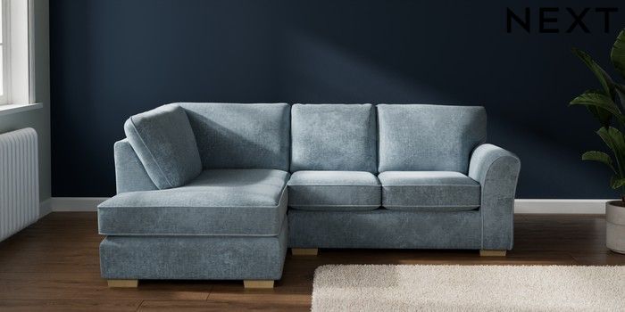 7.2.10 Buy Michigan II Small Corner Chaise - Left Hand Plush Chenille Light Blue Slim Block - Light from the Seasons online shop Click here to use our website with more accessibility support, for example screen readers