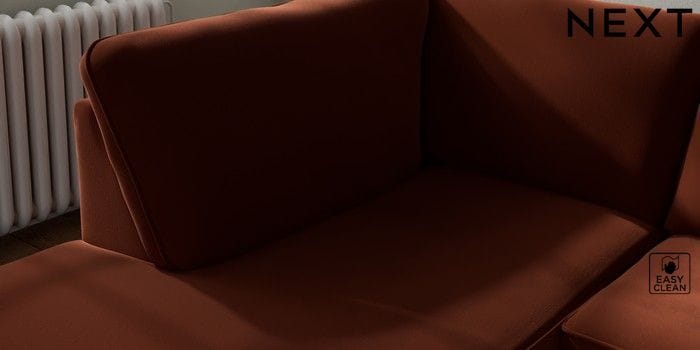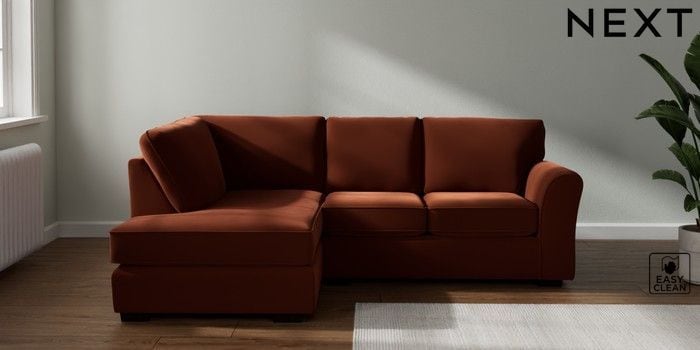 7.3.1 Buy Michigan II Small Corner Chaise - Left Hand Plush Velvet Easy Clean Ginger Orange Slim Block - Dark from the Seasons online shop Click here to use our website with more accessibility support, for example screen readers