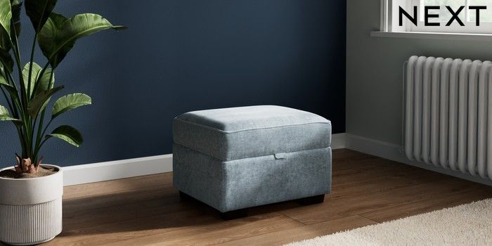 7.2.10 Buy Michigan II Storage Footstool Plush Chenille Light Blue Small Slim Block - Dark from the Seasons online shop Click here to use our website with more accessibility support, for example screen readers