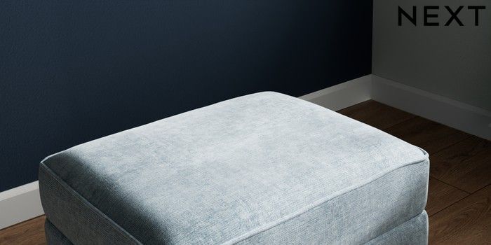 7.2.10 Buy Michigan II Storage Footstool Plush Chenille Light Blue Small Slim Block - Mid from the Seasons online shop Click here to use our website with more accessibility support, for example screen readers