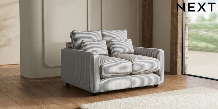 7.3.1 Buy N Premium Farndon Grand Relaxed Sit 2 Seater Small Sofa Chenille Stripe Slate Blue Wooden Glide - Dark from the Seasons online shop Click here to use our website with more accessibility support, for example screen readers