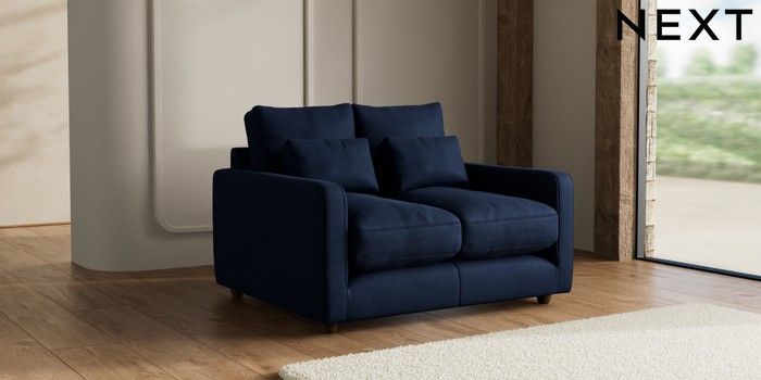 7.3.1 Buy N Premium Farndon Grand Relaxed Sit 2 Seater Small Sofa Luxe Chenille Navy Blue Wooden Glide - Mid from the Seasons online shop Click here to use our website with more accessibility support, for example screen readers