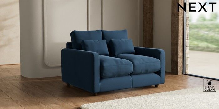 7.3.1 Buy N Premium Farndon Grand Relaxed Sit 2 Seater Small Sofa Plush Velvet Easy Clean Airforce Blue Wooden Glide - Mid from the Seasons online shop