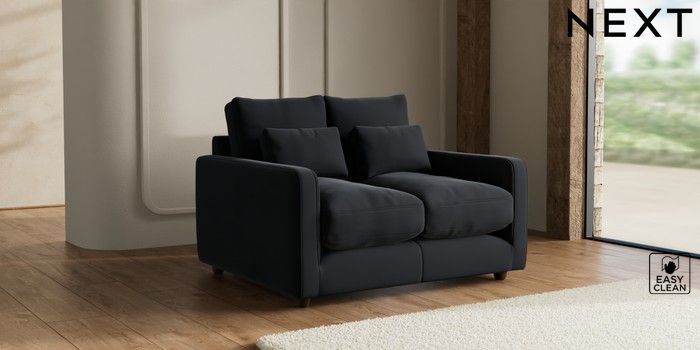 7.3.1 Buy N Premium Farndon Grand Relaxed Sit 2 Seater Small Sofa Plush Velvet Easy Clean Charcoal Grey Wooden Glide - Mid from the Seasons online shop