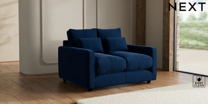 7.3.1 Buy N Premium Farndon Grand Relaxed Sit 2 Seater Small Sofa Plush Velvet Easy Clean Navy Blue Wooden Glide - Dark from the Seasons online shop